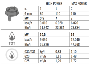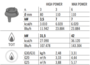 - Versión Max Power con todos los quemadores de 7 Kw.