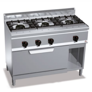 Cocina industrial de 6 fuegos a gas gama HIGH POWER MACROS 700 con mueble integrado.