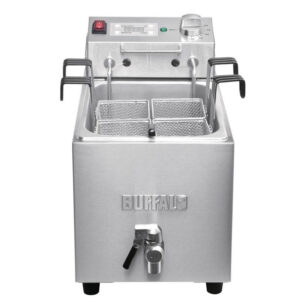 Un fiable y robusto cocedor de pasta eléctrico de 8 litros con tapa de acero inoxidable y grifo de desagüe para una fácil limpieza, construcción de acero inoxidable equipada con control de termostato, dispositivo de corte térmico e interruptor de seguridad de encendido/apagado para poder utilizarlo a alto nivel. Cuenta con un temporizador digital programable con alarma sonora para una cocción fácil y perfecta de la pasta. Cestas de acero inoxidable de alta calidad, ideales para porciones individuales de pasta. Cabeza eléctrica removible con interruptor de seguridad.