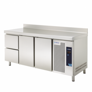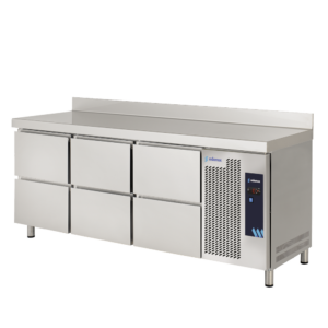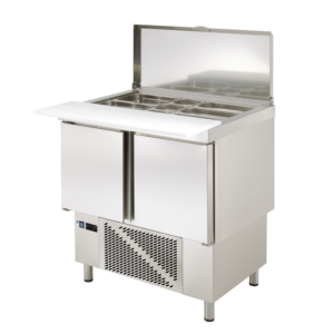 Prácticos y cómodos mostradores, ideales para preparar pizzas, ensaladas, sándwiches y mucho más. Incluyen superficie de trabajo de acero inoxidable, zona para cubetas GN con tapa abatible de acero inoxidable para proteger el contenido y espacio de almacenamiento inferior refrigerado. Termostado totalmente automático con display digital constante y descongelación automática. Sin CFC